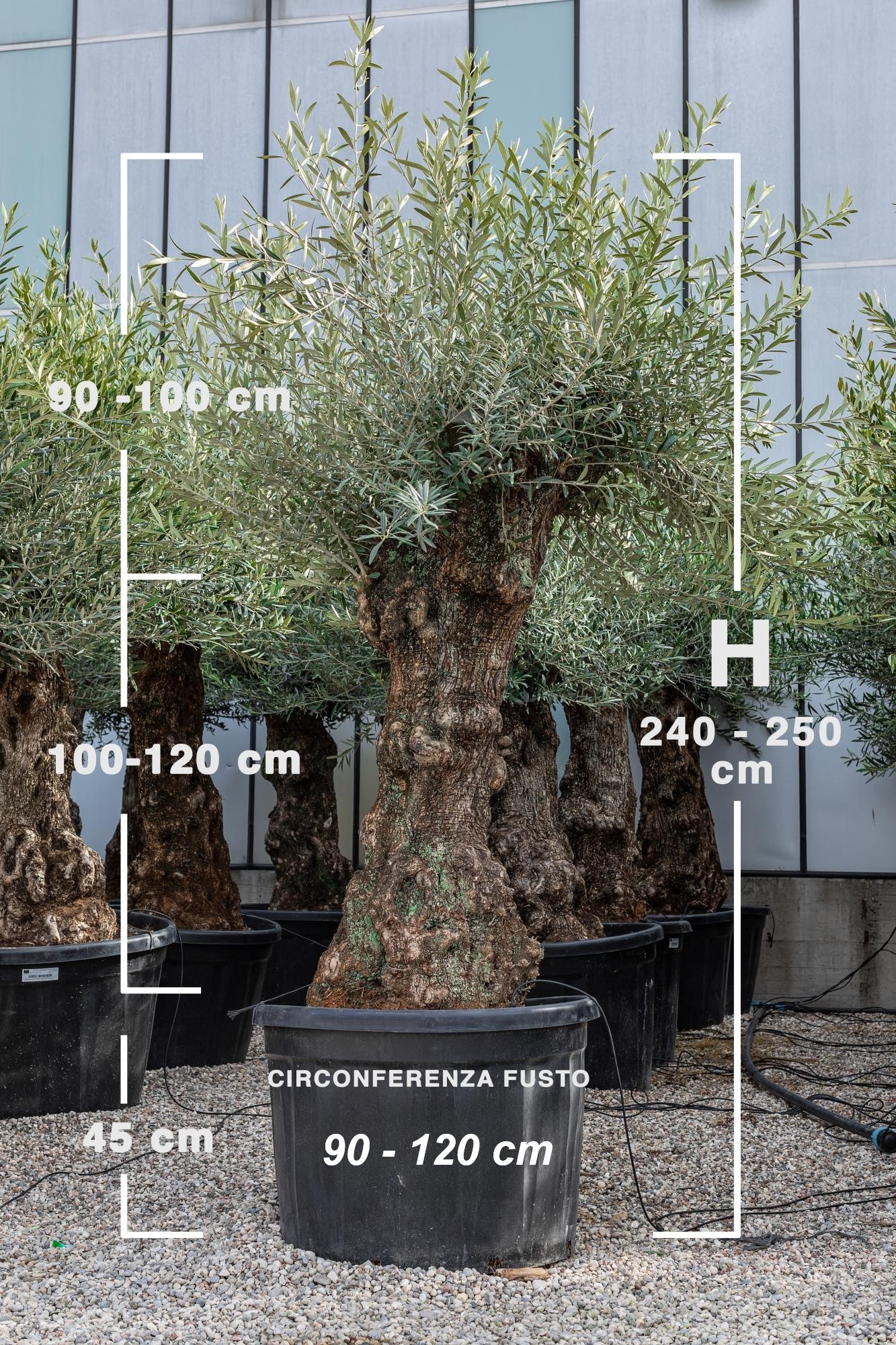 Pianta da ulivo di altezza minima 2,40 mt fino 2,50 mt, circonferenza della pianta da 90 cm a 120 cm.